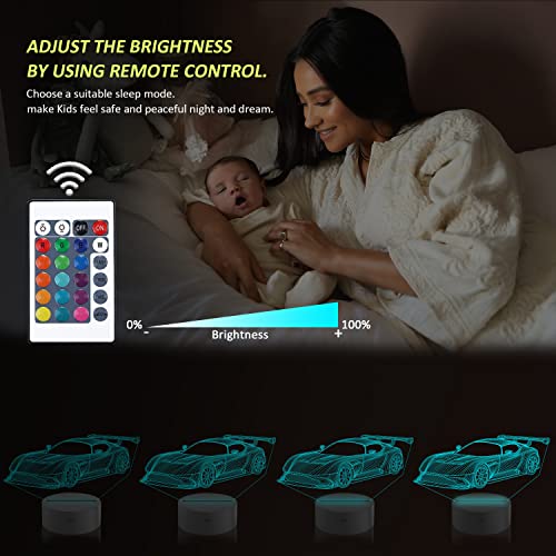 CooPark Auto 3D Night Light, Lampada da corsa sportiva Illusion con 16 telecomando che cambia colore, Vacanze Natale Regali di compleanno per bambini Giocattoli per la casa Regali