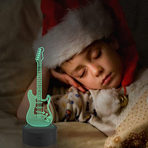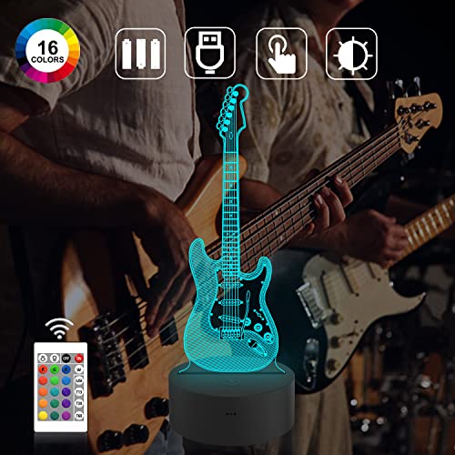 CooPark Lampade per chitarra 3D con telecomando, lampada a LED 16 colori touch dimmerabile USB/batteria, decorazione Regalo di compleanno di Natale per bambino Bambino Adolescente