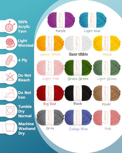 Coopay Filato per uncinetto e maglieria, 25gx14 Colori Crochet Filato 1071yd Filato Acrilico per Crochet Amigurumi Kit, Multicolor Filato Kit 4ply Morbido Filato Set per Principianti/Professionisti