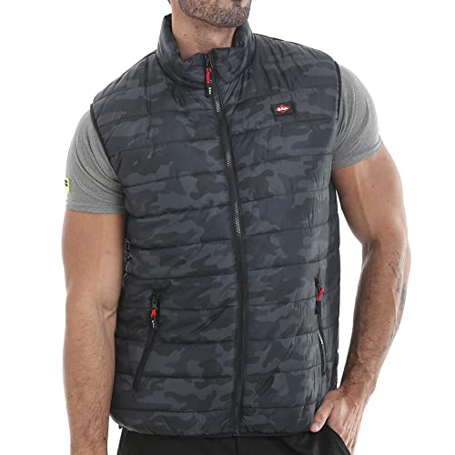 Lee Cooper LCVST708 abbigliamento da lavoro Mens Slim Fit Leggero Camo Stampa imbottito gilet antivento idrorepellente termica Bodywarmer Gilet, Nero Camo, X-Large