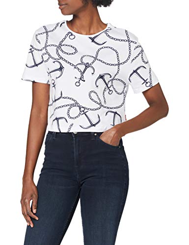 Lee Cooper Printed Cropped Tee T-Shirt, A Righe, Blu, L Donna