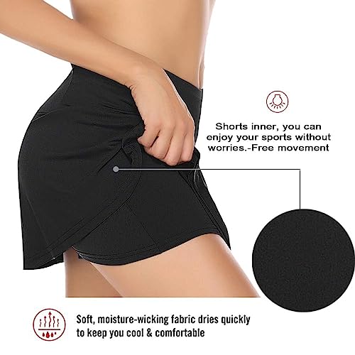 COOrun Gonna da tennis, da donna, sportiva, con pantaloni interni, da tennis, sci, golf, con tasche, taglie S-XXL Nero XL