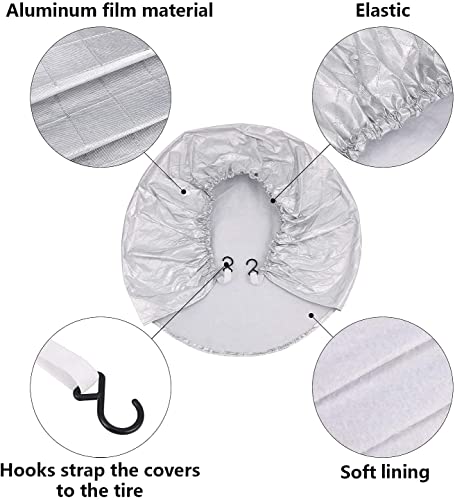 COOSOO Set di 4 coperture per pneumatici, in alluminio, impermeabile, antipolvere, con ganci per rimorchio, camper,SUV, camper, jeep,protezione per ruota per pneumatici da neve,adatto a 26-27 pollici