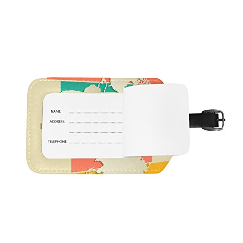 COOSUN World Map 3D Retro Background Etichette Viaggi etichette segnaprezzo carta di nome per il bagaglio Valigia Bag Zaini, 2 PCS medio multicolore