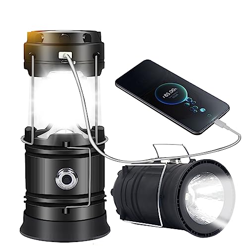 Cootway Solare Lanterna da Campeggio, Ricaricabile Lanterna LED Campeggio Impermeabile, Torcia Solare Elettrica a LED perTenda,Pesca,Escursionismo, Emergenza, Taglia unica, Nero