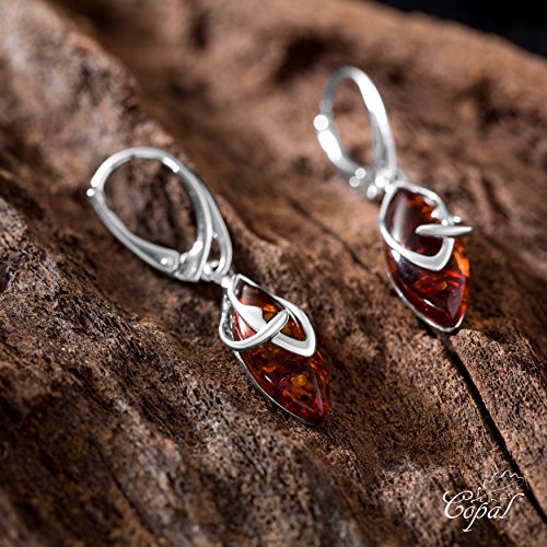 Copal Donne Orecchini in Ambra Argento Sterling 925 Natura Marrone Goccia Pendenti Confezione Regalo Idee per la Mamma