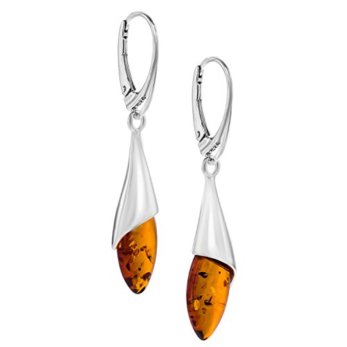 Orecchini in argento sterling con marchio 925, con ciondolo in ambra, 45mm x 9mm., a monachella. ll nostro vasto assortimento offre anche la collana da abbinarci.