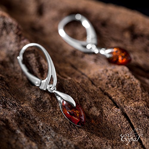 Copal Donne Orecchini in Vera Ambra Argento Sterling 925 Natura Marrone Goccia Confezione Ecologica Regalo Migliore Amica