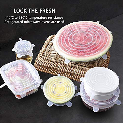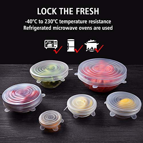 Dimensioni versatile: perfetto per contenitori da 6,6 cm a 21,1 cm, come ciotole, piatti, contenitori, barattoli per muratori, tazze o lattine. I coperchi elastici in silicone possono sigillare ermeticamente per mantenere il cibo, frutta e verdura freschi più a lungo e lontano dalle mosche.