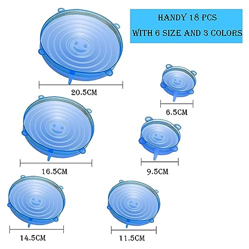 18 coperchi in silicone in 3 colori, per yogurt, riutilizzabili, coperchi in silicone estensibili, rotondi, in silicone, per barattoli di diverse dimensioni,