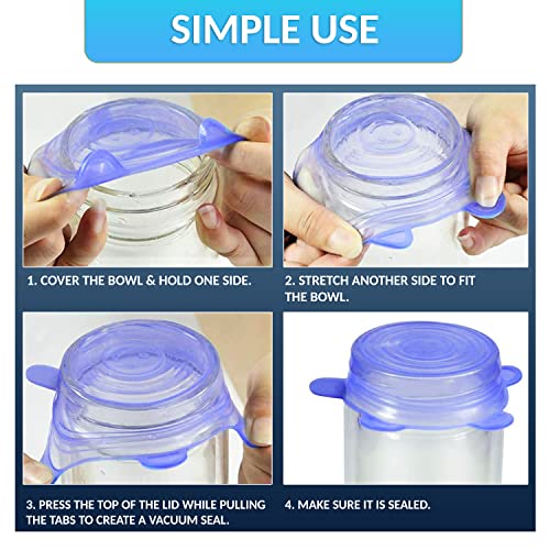FACILE DA USARE E MANTIENE GLI ALIMENTI FRESCHI Il nostro set di eco coperchi riutilizzabili consente di coprire una varietà di contenitori, ciotole, barattoli, pentole e tazze, allungandosi facilmente sul bordo e creando una chiusur