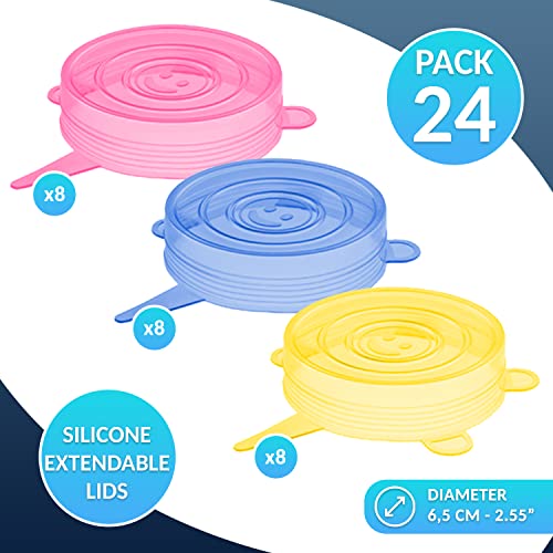 Coperchi in silicone estensibile cucina riutilizzabili ecologici Coperchi di latta per alimenti per animali domestici Coperchi per barattoli di vetro Coperchi in vetro (24 Pezzi)