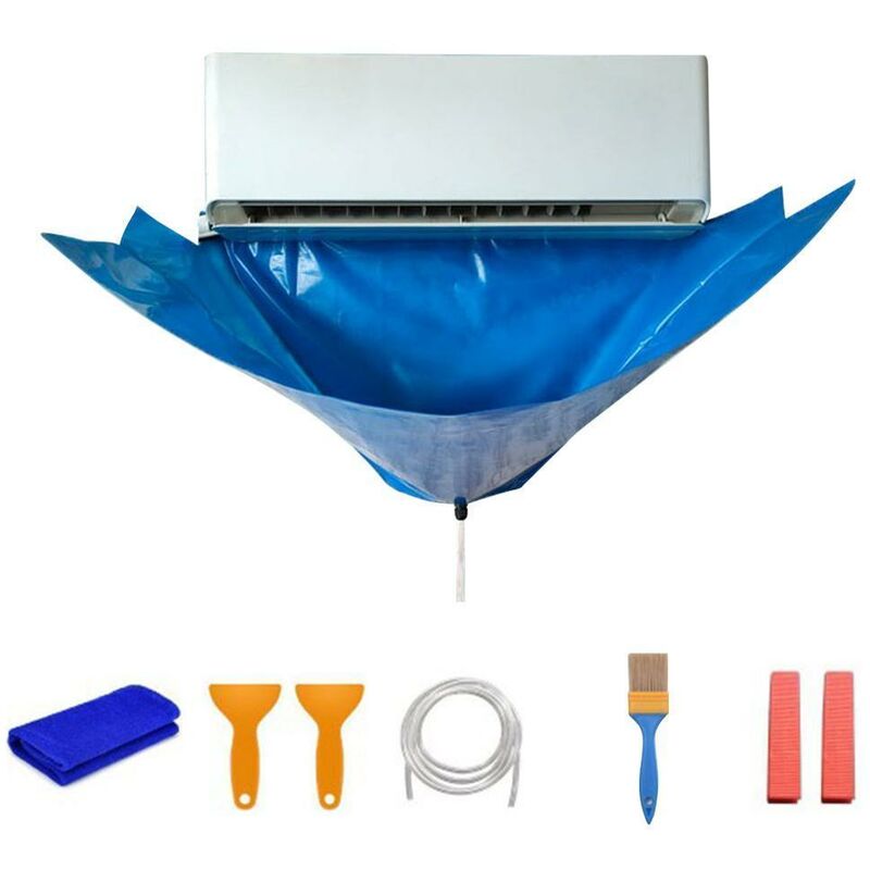 Coperchio per il lavaggio del condizionatore d'aria strumento per la pulizia della copertura antipolvere del condizionatore d'aria a pareteCaratteristica:1. Materiale di alta qualità: realizzato con striscia di tenuta impermeabile artificiale di grado PU con punti stretti, questa copertura è durevole e di alta qualità, anti-attrito, impermeabile, facile da pulire.2. Facile da installare: tira il coperchio sul dispositivo e riparalo con il cinturino e la fibbia. Una presa esterna integrata, che ti consente di scaricare l'acqua in un secchio.3. Regolabile: design con chiusura a coulisse e coulisse sul bordo del coperchio per regolare la bocca aperta come ti piace, corda elastica di tipo pull per evitare che le acque reflue si schizzi durante il processo di aria condizionata trasparente.Tipo: coperchio del condizionatore d'ariaMateriale: panno + fibra elastica poliuretanicaColore: BluMisura per: 1-1.5 HPAdatto per appendere condizionatori d'aria entro 95cm di lunghezzaCornici E Articoli