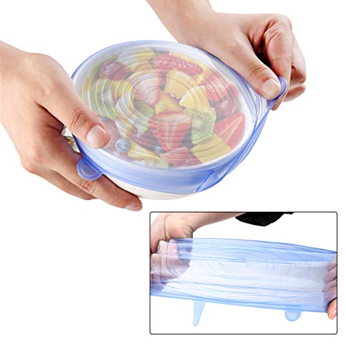 Coperchio in silicone estensibile, 12 pezzi di varie dimensioni Coperchio flessibile, riutilizzabile e duraturo per alimenti, coperchio per alimenti freschi, coperchi per alimenti (Blu + Trasparente)