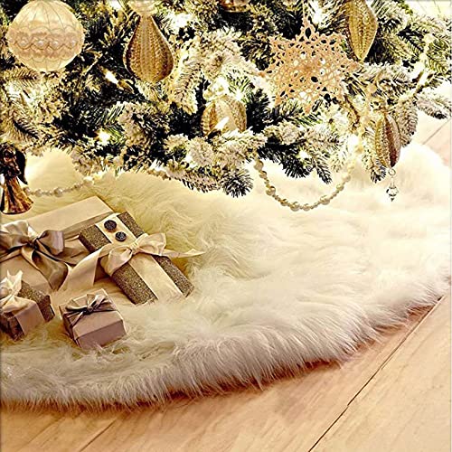 Coperta Per Albero Di Natale Bianca Gonne a Doppio Strato Con Tappetino Per Albero Di Natale Copri Tappetino Base Per Natale Per Esterno,Interno,Soggiorno,Camera Da Letto,Giardino,Bar,Hotel,Ufficio