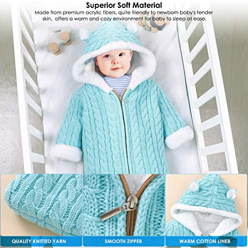 Materiale morbido e accogliente: realizzato in fibre acriliche di qualità con fodera in pile, super morbido e caldo, delicato sulla pelle delicata dei neonati. La chiusura a cerniera liscia sulla parte anteriore lo rende facile da indossare o togliere.