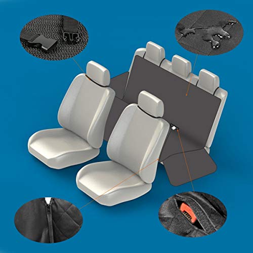 Protezione completa per porte, poggiatesta e panchina posteriore: con protezioni laterali extra resistenti con chiusure lampo, questa amaca per cani protegge il sedile dell'auto e protegge il cane. I pannelli laterali proteggono le porte e impediscono lo sporco del vano piedi. Tutti i peli e lo sporco rimangono sul coprisedile del sedile posteriore. Le coperture protettive per i poggiatesta proteggono la parte anteriore e la parte posteriore del poggiatesta da saliva e sporco.
