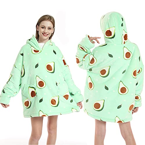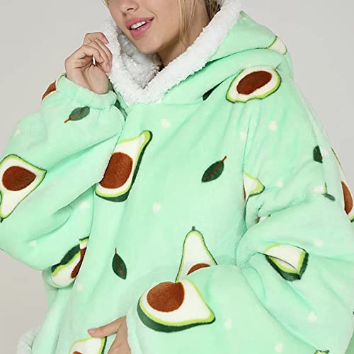 Coperta con cappuccio da donna, oversize, avocado, coperta invernale in pile caldo e morbido, per adulti e bambini