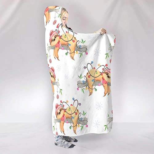 Coperta con cappuccio, coperta con stampa, coperta per uomo e donna, invernale,bradipo di natale 60x50 inch