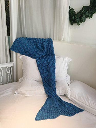 Coperta Di Coda Sirena Maglia Morbida E Calda Divano Letto Soggiorno Coperta Aria Condizionata Coperta Per Bambini E Adulti 150*75cm (Blu)