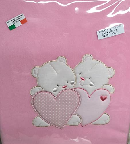 Coperta Copertina Lettino Neonato in Pile con Ricamo mis.150X110 cm 100% Made in Italy