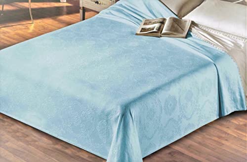 Coperta Copriletto Sopra Coperta Tessuto Broccato 100% Cotone 5 Colori 6 Misure Elisa (Azzurro, Piazza e Mezza 220x250)