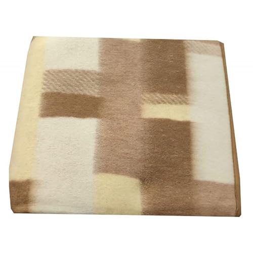 Coperta 50% Lana Calda Dis. Tetrix Singolo Piazza e Mezza Matrimoniale Maxi (Beige, Piazza e Mezza 180x220)