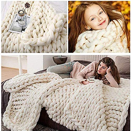 Coperta Lana Grossa, Coperta Maglia Intrecciata a Maglia Pesante con Accento Morbido Fatto a Mano per Divano Divano Letto Regalo di Arredamento per la Casa,Beige,60 * 80