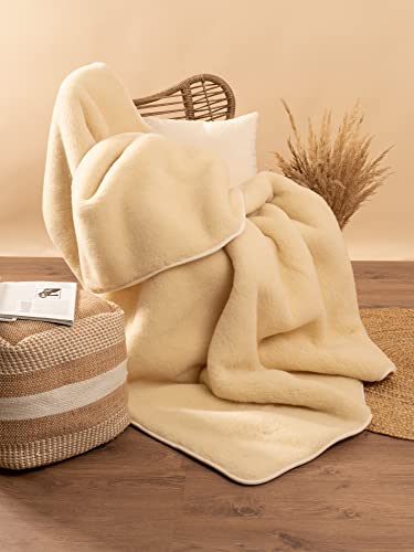 Coperta Lana Merinos 180x200 cm - Coperta Morbida in 100% lana di Pecora Merino - Coperta Grande e Soffice - Peso 1000 g/m2 - Materiale Traspirante