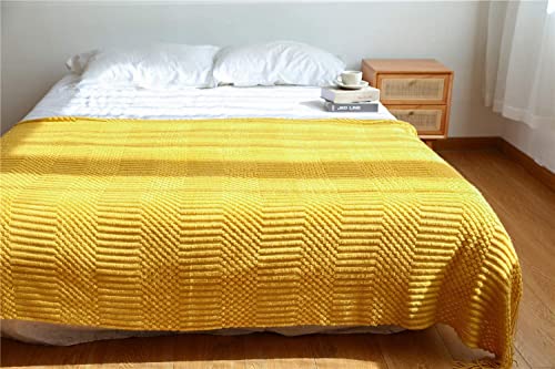 Coperta lavorata a maglia, leggera e confortevole, adatta per letto e divano (giallo)