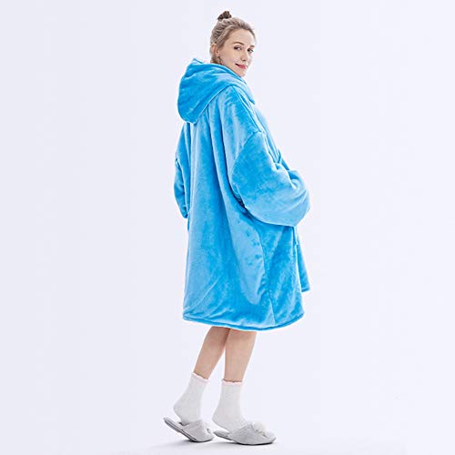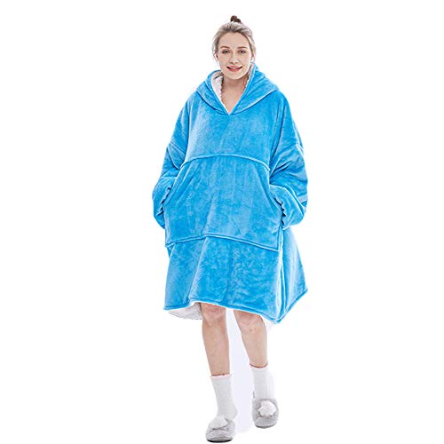 Coperta oversize con cappuccio, felpa casual ultra morbida Sherpa con tasca gigante per donne e uomini Azzurro Etichettalia unica