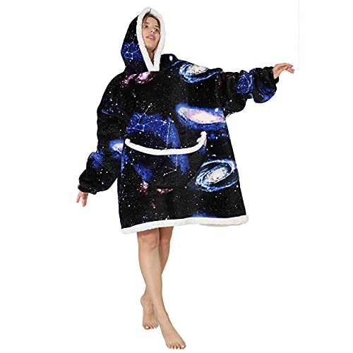 Coperta oversize con cappuccio - Coperta in pile Sherpa indossabile unisex, taglia da adulto, modello felpa gigante soffice e confortevole con cappuccio, Universo,