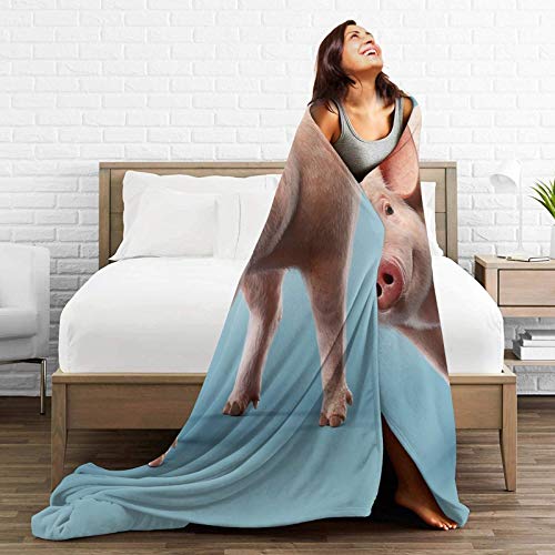 Coperta in pile di flanella con grazioso maialino blu, per due dimensioni, morbido, di lusso, caldo, leggero, soffice, decorativo, divano letto 203,2 x 152,4 cm