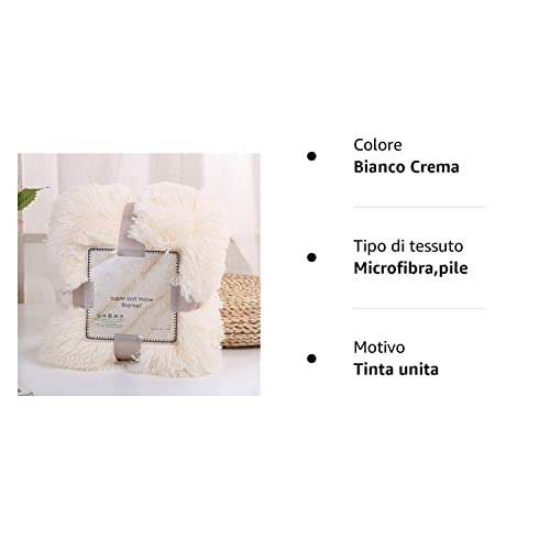 Coperta in Pile Microfibra Super Soffice Plaid Termico per Divano e Letto Morbida e Traspirante (Bianco Crema, 160x200 cm)