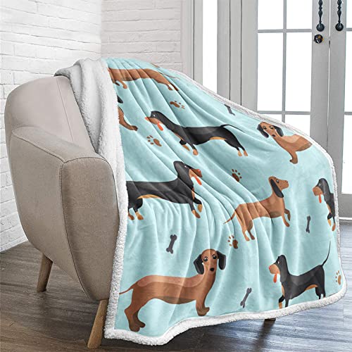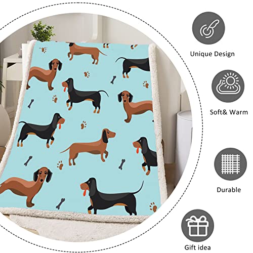 Coperta reversibile per salsiccia con bassotto stampato per cani, per bambini, adolescenti, adulti, morbida e calda microfibra in pile tinta unita, per letto, divano, divano e viaggio, 150 x 200 cm