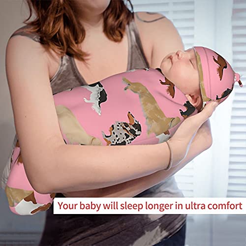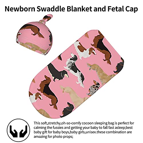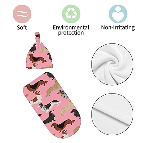 Coperta Swaddle con Beanie Hat Set Coperte Fasce Cane Bassotto Coperta Elastica per Ricezione Neonati