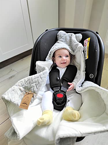 Bo Copertina per ovetto, passeggini e seggiolini per bambini, coperta per neonati, dimensioni ideali 80 x 80 cm, con cappuccio e chiusura in velcro, per inverno ed estate