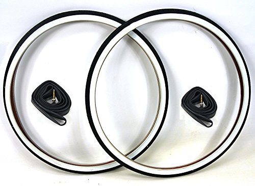 2 x Copertoni + 2 x Camere d'Aria per Bici Bicicletta/Misura 26" x 1 3/8 - Colore Bianco - Nero/Copertone Bicicletta Camera d'Aria Bicicletta