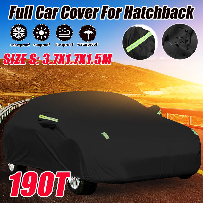 Coperture complete impermeabili universali per auto per Hatchback Indoor Outdoor Sun UV Snow Protezione resistente alla polvere Specifica: Condizione: 100% nuovo di zecca!! Numero di modello: G87621 Nome prodotto: copertura per auto Materiale: poliestere 190T Colore: nero Dimensione: S: 3,7x1,7x1,5 m (145,66"x66,92"x59,05") Tipo: Copriauto Quantità: 1 pz Montaggio: Universale per Hatchback. (Si prega di confrontare con quello originale prima dell'acquisto!) Caratteristiche: 1.Ideale per proteggere il tuo veicolo da graffi, sporco, polvere e escrementi di uccelli e altro, mantenendo la tua auto asciutta e pulita. 2.Utilizzare all'aperto (parcheggio in strada anche) e al coperto 3. Eccezionale a prova di pioggia, ghiaccio e neve. Durevole in condizioni climatiche estreme. 4.Può essere utilizzato anche per la luce solare e la riflessione UV. 5. Con striscia riflettente, fibbia antivento e 4 cinturini. 6. L'elastico nella parte inferiore fissa saldamente il copriauto alla tua auto per