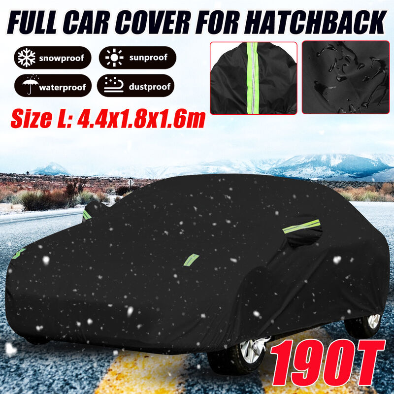Coperture complete impermeabili universali per auto per Hatchback Indoor Outdoor Sun UV Snow Protezione resistente alla polvere Specifica: Condizione: 100% nuovo di zecca!! Numero di modello: G87621 Nome prodotto: copertura per auto Materiale: poliestere 190T Colore: nero Dimensione: L: 4,4x1,8x1,6 m (173,22"x70,86"x62,99") Tipo: Copriauto Quantità: 1 pz Montaggio: Universale per Hatchback. (Si prega di confrontare con quello originale prima dell'acquisto!) Caratteristiche: 1.Ideale per proteggere il tuo veicolo da graffi, sporco, polvere e escrementi di uccelli e altro, mantenendo la tua auto asciutta e pulita. 2.Utilizzare all'aperto (parcheggio in strada anche) e al coperto 3. Eccezionale a prova di pioggia, ghiaccio e neve. Durevole in condizioni climatiche estreme. 4.Può essere utilizzato anche per la luce solare e la riflessione UV. 5. Con striscia riflettente, fibbia antivento e 4 cinturini. 6. L'elastico nella parte inferiore fissa saldamente il copriauto alla tua auto per