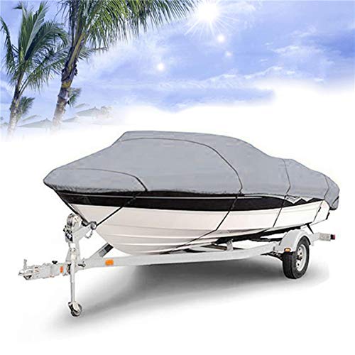 Copertura per Barche, Heavy Duty 600D Oxford Impermeabile Anti-UV Trailerable Cover per V-Hull, Tri-Hull, PRO-Style, Pesca, Bass Boat, Runabout,Grigio,11/13FT(420 * 270CM)