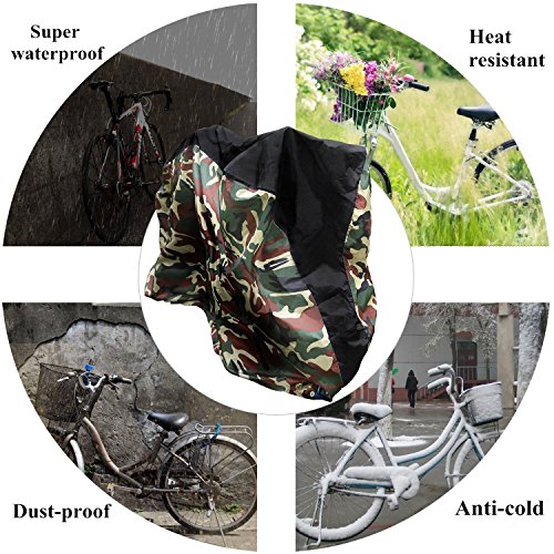 Copertura Biciclette da Esterno Telo Copribici Impermeabile Anti Polvere Sole Pioggia Vento Protezione UV Copri Bicicletta per Montagna Strada Crociera e Biciclette Ibride (camuffamento)