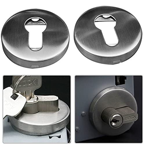 Dimensioni: 2 paia di copri buco della serratura in acciaio inossidabile. Il diametro è di 53 mm e l'altezza è di 10 mm, distanza tra i fori delle viti di 38 mm, adatto a tutte le serrature a cilindro / cilindri sagomati e serrature per porte.