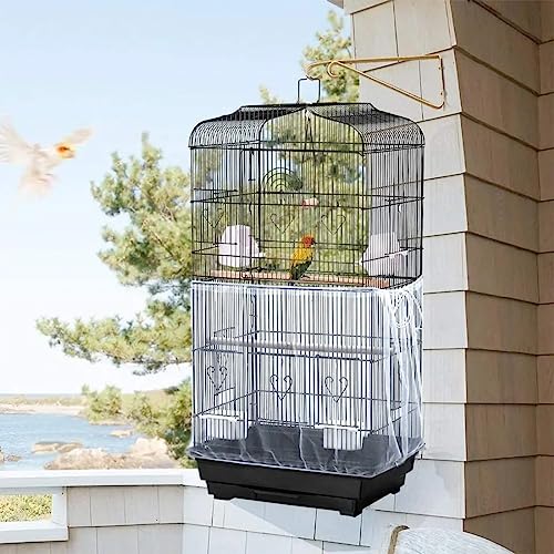 Copertura per Gabbia Uccelli Extra Large Copertura in Rete per Gabbia Uccelli di Nylon con Cattura di Piume Semi Protezione Gonna Morbida Ariosa per Parrocchetto Ara Circonferenza Regolabile 150-200cm