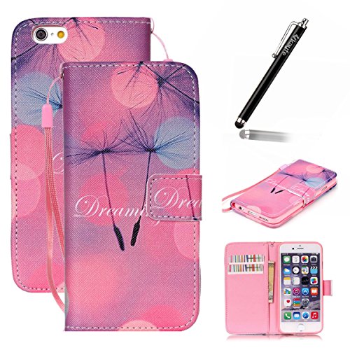 Copertura per iphone 6 Plus in pelle, iphone 6S Plus Custodia Portafoglio, iphone 6 5.5" Case Cover, Ukayfe rosa-Dandelion Dreaming Design dell'unità di elaborazione di vibrazione del cuoio di protezione del basamento Shell Bookstyle della copertura della cassa con slot di carta di credito Holder e cordicella della cinghia portatile per iphone 6 Plus/6S Plus (5.5") + Stilo