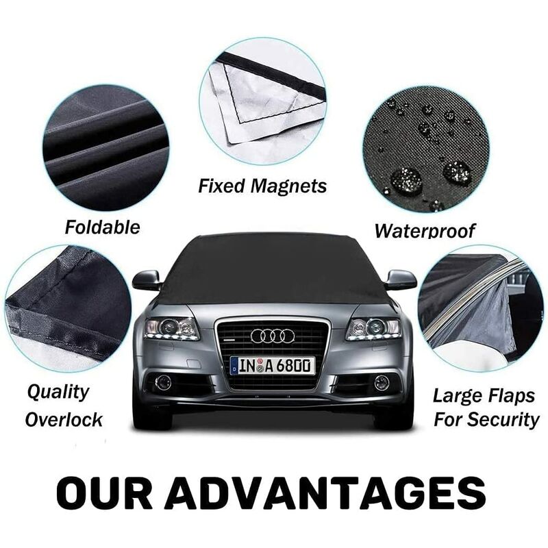 ?? La copertura per parabrezza protegge il parabrezza dal gelo estremo e risparmierai molto tempo perché non dovrai raschiare o spazzare il parabrezza nelle fredde mattine invernali. Copertura magnetica per parabrezza: materiali e lavorazione di alta qualità, 7 magneti (15 mm * 6 mm) aderiscono saldamente al parabrezza, non si verificano graffi in nessuna circostanza poiché i magneti sono ricoperti di tessuto;
