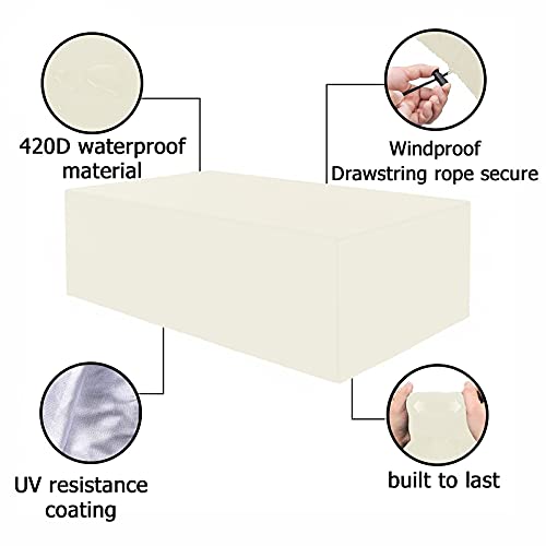 Copertura per Mobili da Giardino, Telo Protettivo Rettangolare per Tavolo e Sedie da Esterni, 420D Oxford, Impermeabile & Antipolvere & Anti-UV & Resistente allo Strappo - Beige - 120x90x70cm