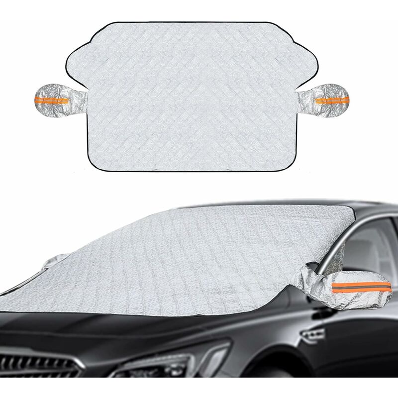 Dimensioni universali - Le dimensioni del corpo di 145 x 119 cm lo rendono abbastanza grande da coprire l'intero parabrezza e tergicristallo. Le nostre coperture per parabrezza per auto sono adatte per la maggior parte delle auto, SUV e altro ancora. Il design unico della copertura dello specchietto laterale può proteggere lo specchietto laterale dal gelo e dalla neve in inverno. Materiale aggiornato - Addensare 4 strati per garantire un'elevata resistenza allo strappo. Questa copertura antigelo per parabrezza è realizzata in materiale composito multistrato (foglio di alluminio PEVA + doppia fodera in cotone + tessuto non tessuto), durevole e resistente agli strappi. Facile da installare: questa copertura per parabrezza può essere installata rapidamente in un minuto. Posiziona la copertura sul parabrezza, aggancia le due ali alla portiera e fissala saldamente (non intacca la guarnizione della portiera), quindi avvolgi lo specchietto laterale con la copertura dello specchietto
