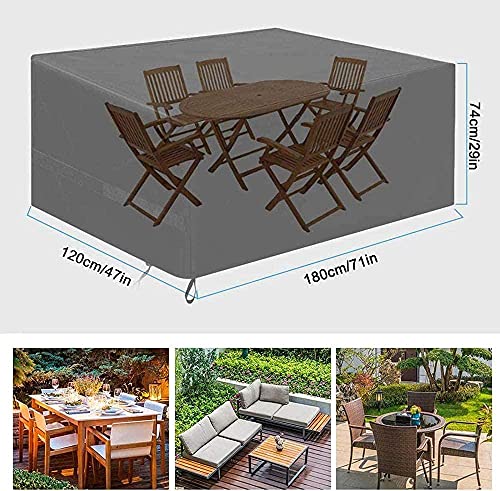 Materiali di alta qualità: nuovi materiali migliorati, fodere per mobili in tessuto di nylon oxford ad alta densità 420D e rivestimento in PVC impermeabile. Il tessuto ha un'elevata densità di cucitura, una forte resistenza allo strappo e una lunga durata. Le coperture per mobili da esterno proteggono meglio tavoli e sedie da luce solare, pioggia, vento e polvere.