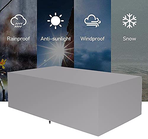 Copertura Tavolo Esterno, Copertura Mobili da Giardin Rettangolari Copri Tavolo da Esterno Tessuto 420D Oxford Telo Copritavolo da Esterno Impermeabile Anti Vento Sole 330x220x90cm(130x87x35in)